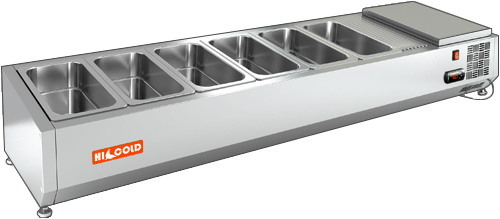 Настольная холодильная витрина HICOLD VRTO 1525 1/4 к PZE4 предназначена для охлаждения, кратковременного хранения и демонстрации ингредиентов, салатов и готовых блюд на предприятиях общественного питания и торговли. Устанавливается на холодильные столы для пиццы PZE4 (для монтажа предусмотрены специальные крепления в нижней части корпуса).