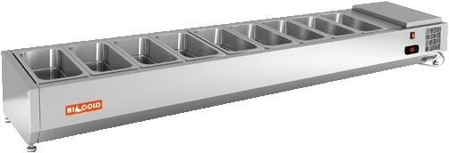 Настольная холодильная витрина HICOLD VRTO 1915 1/4 предназначена для охлаждения, кратковременного хранения и демонстрации ингредиентов, салатов и готовых блюд на предприятиях общественного питания и торговли.