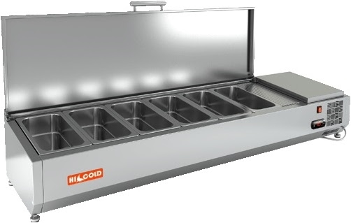 Настольная холодильная витрина HICOLD VRTU 1425 1/4 предназначена для охлаждения, кратковременного хранения и демонстрации ингредиентов, салатов и готовых блюд на предприятиях общественного питания и торговли.
