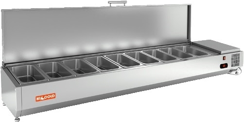 Настольная холодильная витрина HICOLD VRTU 1915 1/4 предназначена для охлаждения, кратковременного хранения и демонстрации ингредиентов, салатов и готовых блюд на предприятиях общественного питания и торговли.
