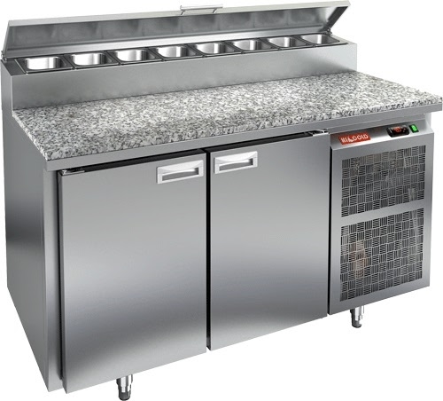 Холодильный стол для пиццы HICOLD PZ2-11/GN камень предназначен для раскатки теста, а также для охлаждения, хранения и разделки ингредиентов для пиццы на пищевых производствах, предприятиях общественного питания и торговли.