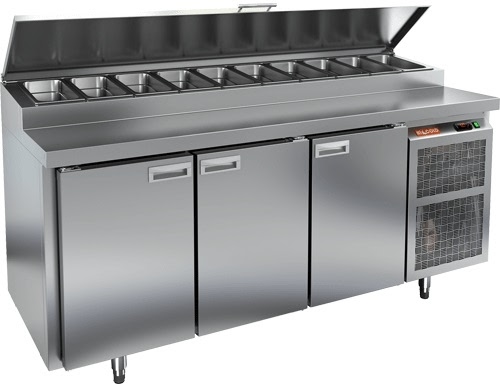 Холодильный стол для пиццы HICOLD PZ2-111/GN предназначен для раскатки теста, а также для охлаждения, хранения и разделки ингредиентов для пиццы на пищевых производствах, предприятиях общественного питания и торговли.