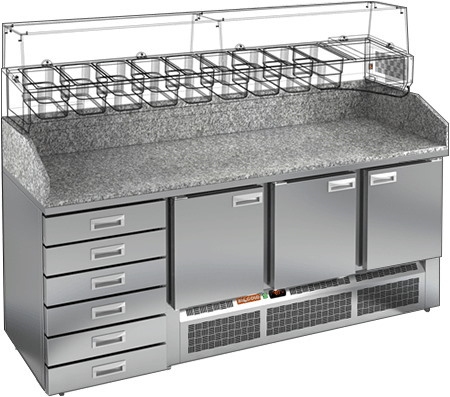 Холодильный стол для пиццы HICOLD PZE4-111/GN предназначен для раскатки теста, а также для охлаждения, хранения и разделки ингредиентов для пиццы на пищевых производствах, предприятиях общественного питания и торговли.
