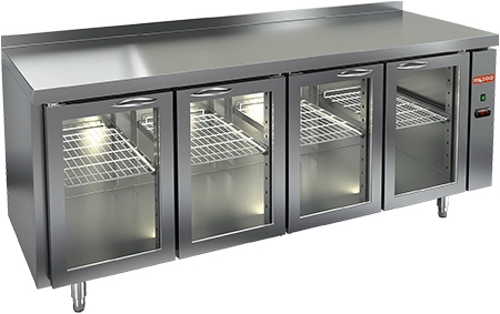 Оснащён легкозаменяемыми магнитными уплотнителями. Имеет распашные стеклянные двери с автоматическими доводчиками и фиксатором открытого положения. Регулируемые по высоте ножки гарантируют устойчивость на неровной поверхности и позволяют подстраивать высоту оборудования под текущие потребности. Изготовлен из нержавеющей стали.