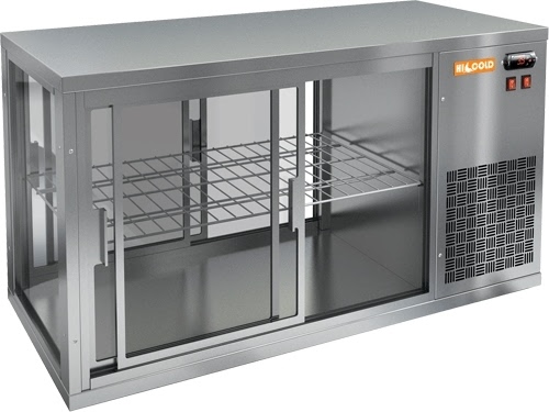 Оснащена электронной панелью управления и светодиодной подсветкой. Модель сквозная: раздвижные дверцы-купе располагаются со стороны продавца и покупателя, обеспечивая максимально полный обзор и удобное извлечение продуктов. Изготавливается из нержавеющей стали.