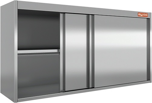 Закрытая полка HICOLD НПК-15/3 предназначена для хранения продуктов в упаковке, посуды и различной кухонной утвари на предприятиях общественного питания и торговли. Оснащена 2 раздвижными дверцами. Выполнена из нержавеющей стали AISI 430.